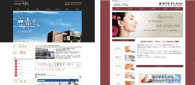 ヘアサロン(美容室・美容院)、エステサロン(エステティックサロン)、ネイルサロン(ネールサロン)、スパ(SPA)、リフレクソロジー、アロマテラピー、骨盤スリミング、ブライダルエステ、フェイシャルサロン、痩身サロン、フットケア、ジュエリーサロン(宝飾品サロン)、小物、ブランド雑貨店、ヒーリングサロン、リラクゼーションサロン、岩盤浴サロン、脱毛サロン、ダイエットサロン、スリムサロン、ヘルシースリムサロン、健康ダイエットサロン、デトックスダイエットエステサロン、アンチエイジングビューティーサロン、コスメティックサロン、スパなど